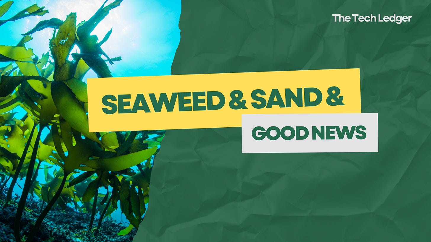 A rare optimism drop. Compostable seaweed wrappers that actually exist and a Finnish sand battery that quietly cuts carbon. No hype, just useful.