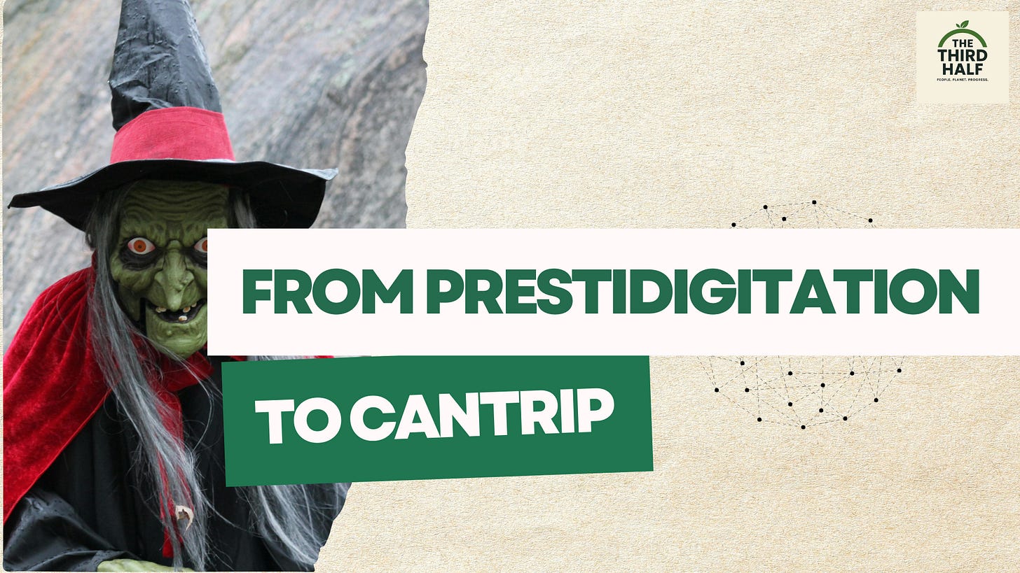 If prestidigitation is the polished illusion on stage, a cantrip is the smaller spell. A flicker. A mischievous nudge. Not the grand reveal — just the quiet shift.